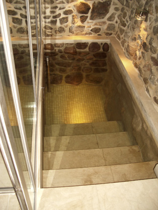 Wellness in einem alten Wassermühlenkeller, mit Dampfsauna, Tauchbecken und Ruhebereich